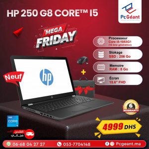 4 999,00 DH HP 250 G8 Core™ i5 (10th gen) 8Go I 256Go SSD I 15.6″ + Sacoche HP [ Neuf ]