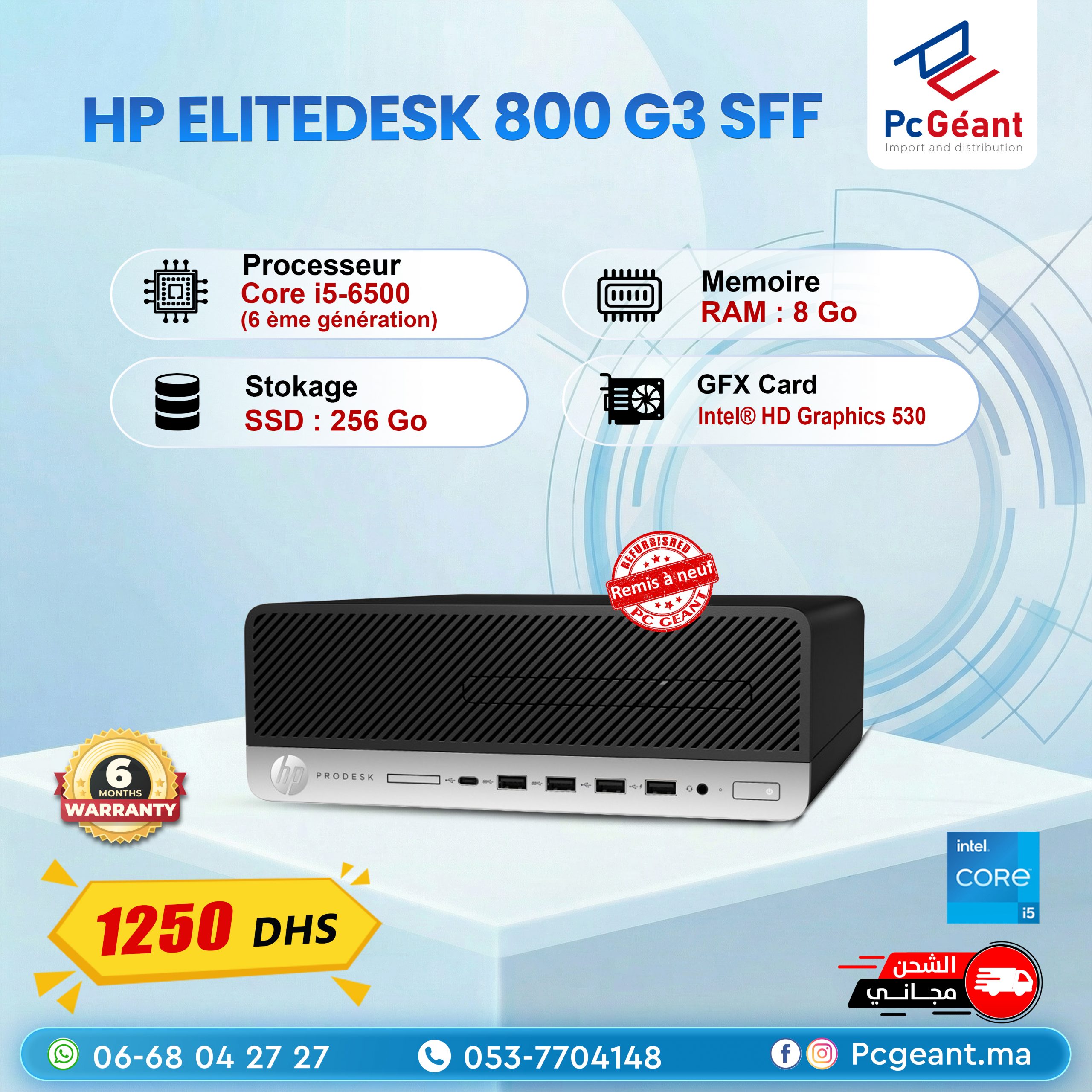HP EliteDesk 800 G3 SFF Core i5-6500 I 8Go DDR4 I 256Go I Win 11 Pro [Remis à Neuf]