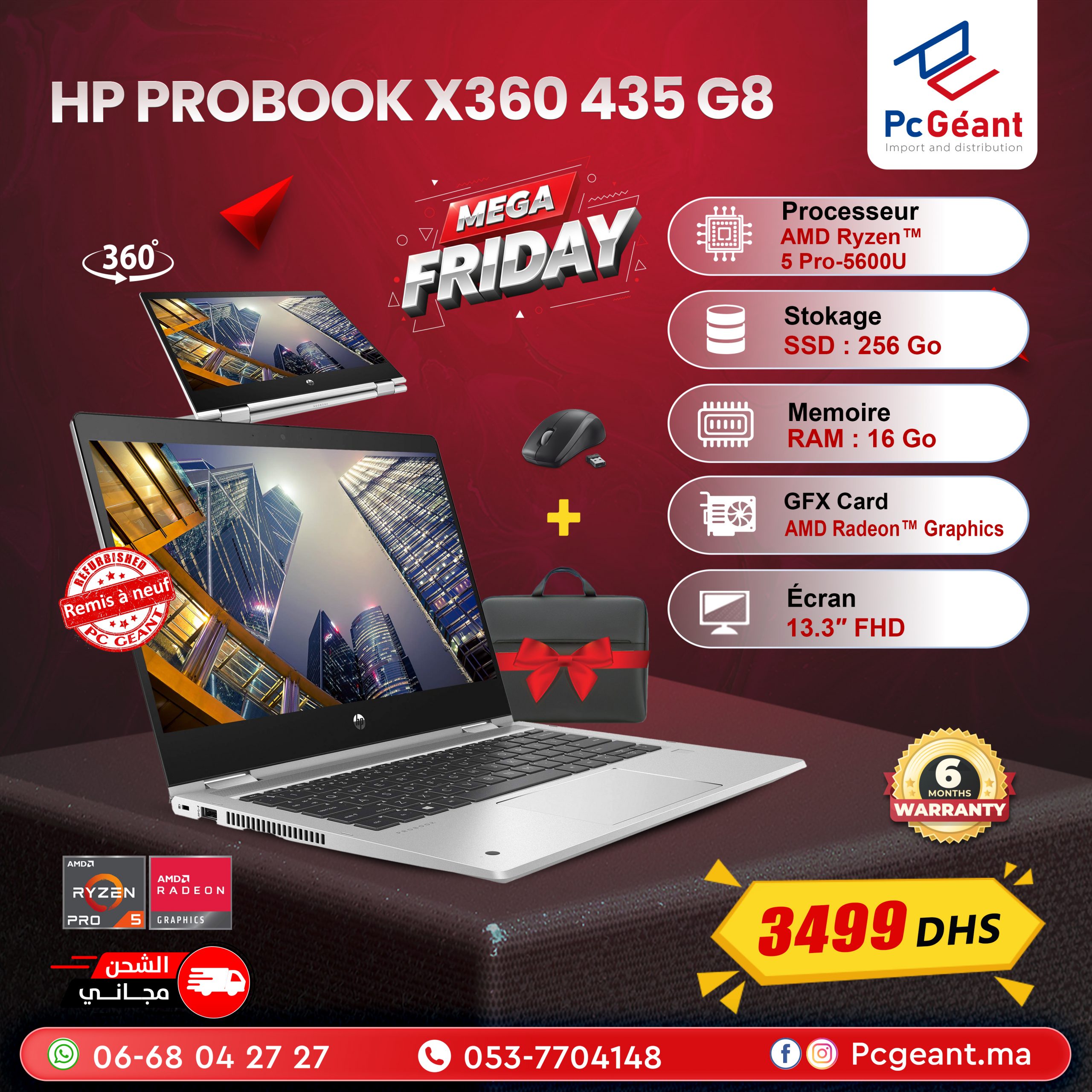 HP ProBook x360 435 G8 AMD Ryzen 5 Pro 5600U I 16Go I 256 Go SSD I 13.3″ Full HD Rotation Tactile [Remis à Neuf]