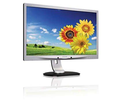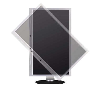 Le moniteur Philips, grâce à sa base Super Ergo évoluée, peut être abaissé quasiment jusqu’au niveau du bureau pour vous offrir un angle de visualisation confortable. La faible différence de hauteur entre le châssis et la table ainsi obtenue est idéale si vous utilisez des lunettes à double ou triple foyer ou à verres progressifs pour travailler sur votre ordinateur. En outre, des utilisateurs de tailles très différentes peuvent utiliser le moniteur avec leurs réglages préférés d’angle et de hauteur, ce qui contribue à réduire la fatigue.